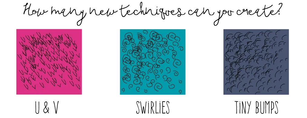 Besides the drawing techniques listed here, try creating 3 of your own techniques to create tone for a drawing. Here’s an example of a few I created myself!