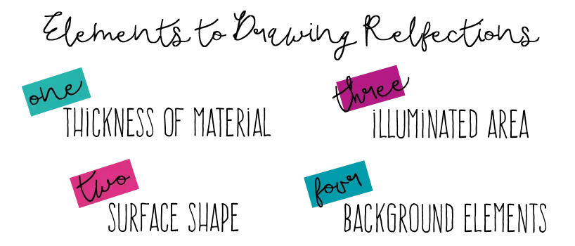 Once you start getting into different textures, you can also explore reflections. There are four things you really need to focus on when drawing reflections.