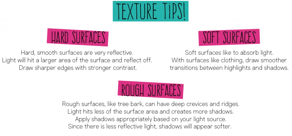 Not everything is made of the same material so learning how to portray different textures can be an important part of drawing.