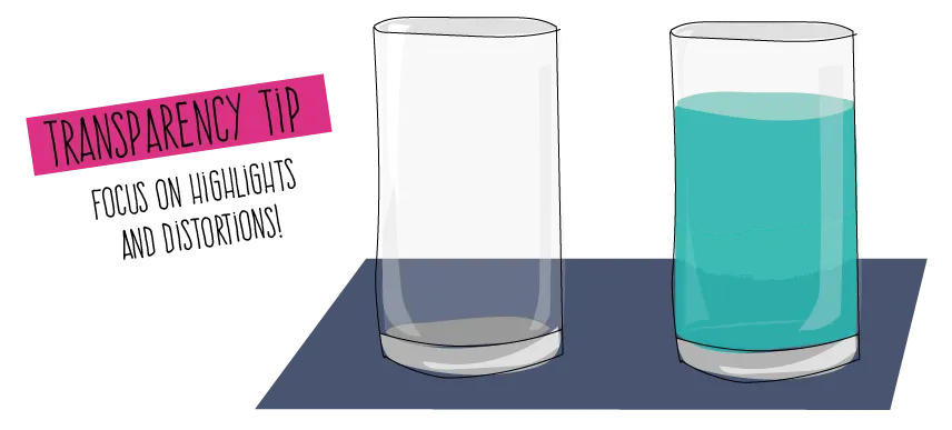 Having a good grasp on shadow, light and value is really important if you want to portray transparency in your art work.